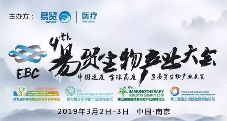 2019易貿(mào)生物產(chǎn)業(yè)大會(huì)(EBC),是中國影響力的生物產(chǎn)業(yè)大會(huì)。3月初即將在南京召開的這場會(huì)議將聚合“第九屆抗體藥物及新藥研發(fā)高峰會(huì)”、“第七屆分子診斷產(chǎn)業(yè)高峰論壇”、“第五屆細(xì)胞免疫產(chǎn)業(yè)高峰論壇”、“第二屆易企說投融資論壇”。目前為止,已呈現(xiàn)113篇發(fā)言,11場專場訪談,4場細(xì)分領(lǐng)域產(chǎn)業(yè)大會(huì),近150位特邀嘉賓。更有其他合作會(huì)場,新品發(fā)布,融資路演,項(xiàng)目合作路演場等。