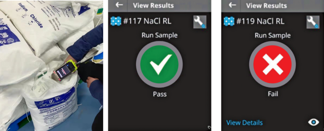 圖7.現(xiàn)場測試及結(jié)果顯示示例(創(chuàng)建NaCl檢測方法對NaCl和MgCl2進行鑒別)