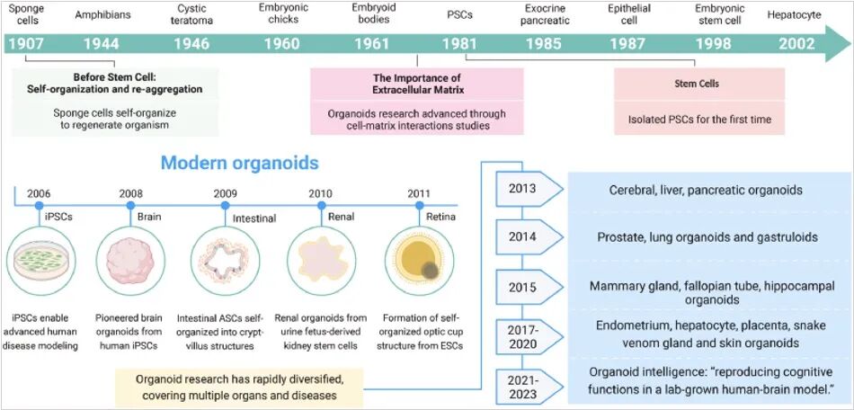 "類器官"一詞于1907年提出。直到2009年,Hans Clevers教授及其團(tuán)隊(duì)培養(yǎng)了第一個(gè)腸道類器官,使得該領(lǐng)域得到了關(guān)注。