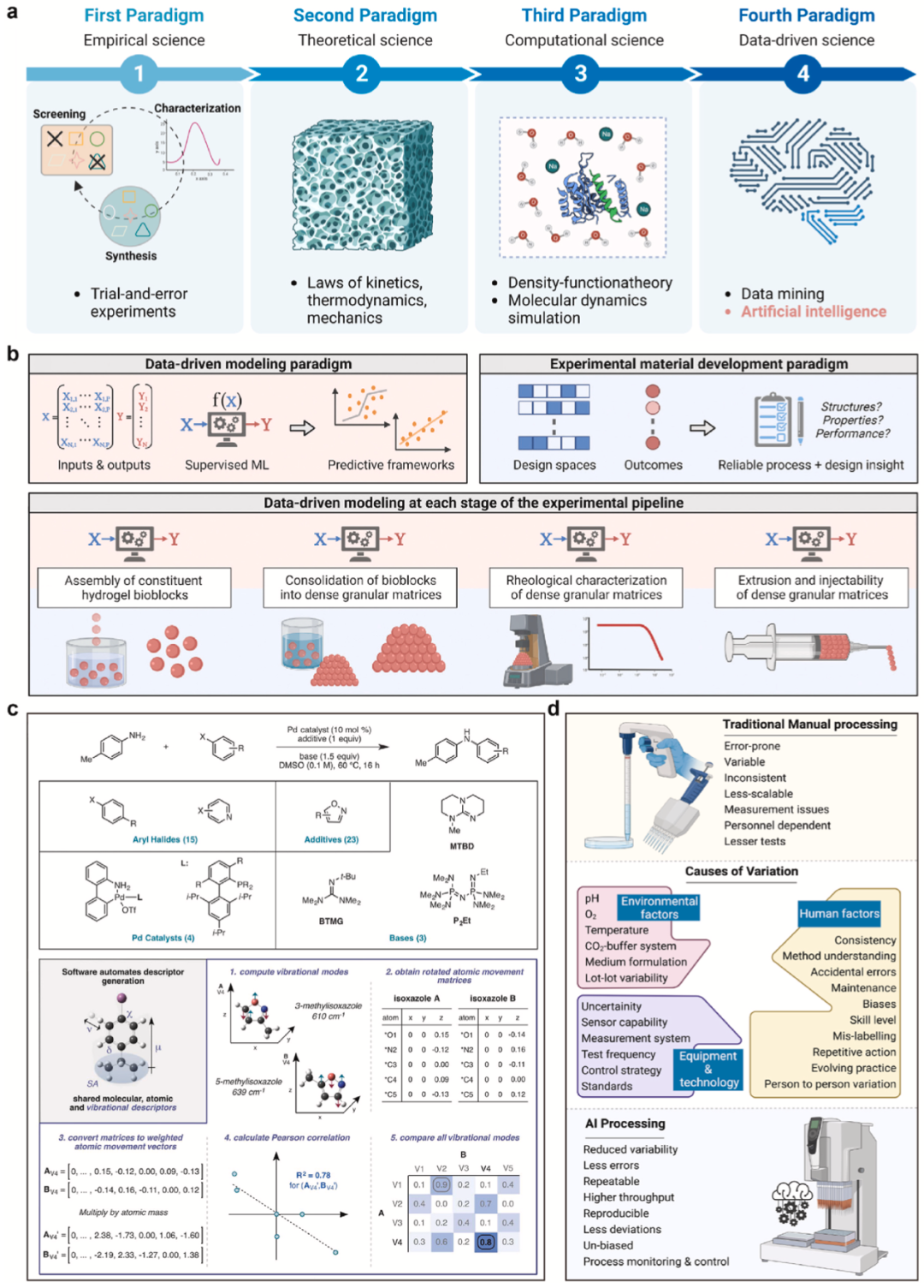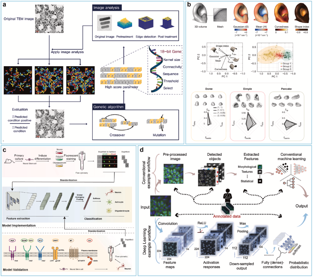 如前所述,基質(zhì)凝膠材料的參與是構(gòu)建類器官的必要條件,這些材料的形態(tài)分析對(duì)其生物性能至關(guān)重要。傳統(tǒng)的方法通常需要人工識(shí)別和處理,這可能容易出錯(cuò),效率低下,而且很主觀,因此,需要引入AI??蓮倪@幾個(gè)生物學(xué)維度進(jìn)行機(jī)器學(xué)習(xí)訓(xùn)練:形態(tài)學(xué)尺度圖像分析、細(xì)胞尺度圖像分析、類器官尺度的圖像分析、組織尺度的圖像分析。