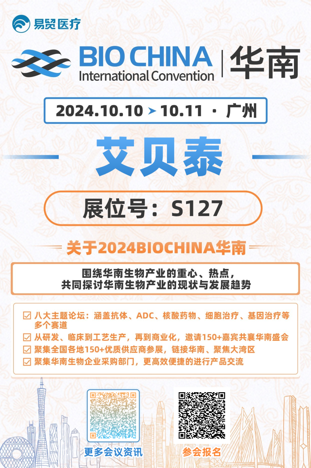 會(huì)議邀請丨艾貝泰誠邀您參加2024BIOCHINA華南