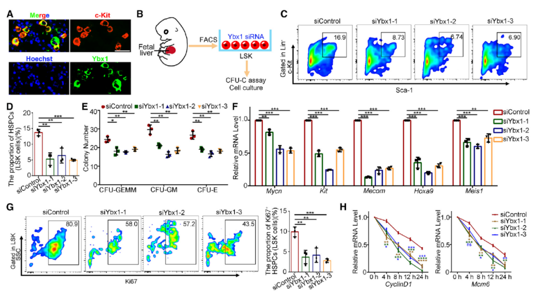 RNA免疫沉淀實(shí)驗(yàn) (RIP-seq, RIP-qPCR, m5C RIP-qPCR): 鑒定和驗(yàn)證HSPCs中Ybx1結(jié)合靶標(biāo)和m5C修飾轉(zhuǎn)錄本;