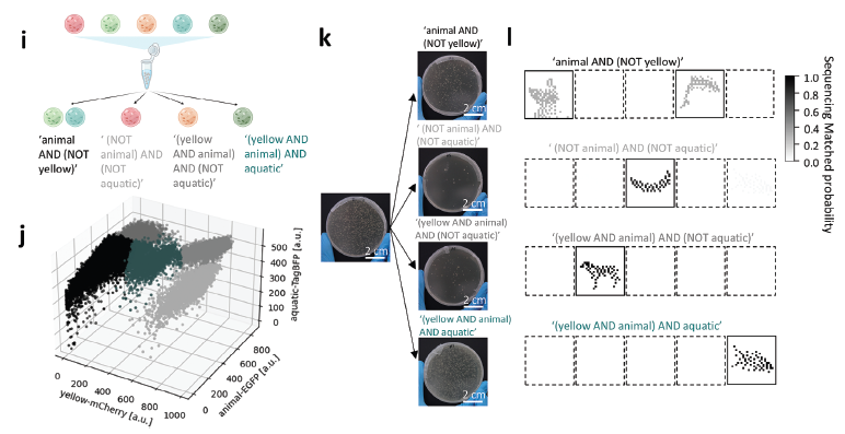 圖2 “細(xì)菌彩珠硬盤"支持多種文件類型 (多色熒光)和布爾邏輯的數(shù)據(jù)檢索