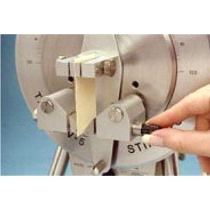 范圍1與Taber的可選靈敏度范圍附件(也稱為Sr或高靈敏度附件)一起使用,以測試其Taber剛度單位值在0-1之間的極其輕質(zhì)和柔性材料。實例包括玻璃紙,天然纖維和合成細(xì)絲,組織紙張,金屬箔,薄膜等。附件包括兩個部分,該部件固定在夾爪之間的驅(qū)動銷釘,以及安裝在螺柱上的驅(qū)動銷支架代替左手滾輪。兩個部件包括精密銷,該銷定向為V-5剛度測試儀的面部。安裝樣品1 1/2“×1 1/2",使得第二和第四銷高于樣本。當(dāng)驅(qū)動盤旋轉(zhuǎn)時,驅(qū)動針座的第四銷在引腳推上時按下樣品上的。當(dāng)樣品被偏轉(zhuǎn)時,從動銷保持器將擺片對準(zhǔn)到適當(dāng)?shù)膭偠戎?。對于范?,樣本僅偏轉(zhuǎn)向右。